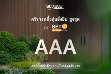 SC Asset คว้าเรตติ้งหุ้นยั่งยืน SET ESG Ratings 2025 ระดับสูงสุด “AAA” ตอกย้ำผู้นำอสังหาริมทรัพย์ไทย ขับเคลื่อนธุรกิจควบคู่การดูแลสิ่งแวดล้อมและสังคม