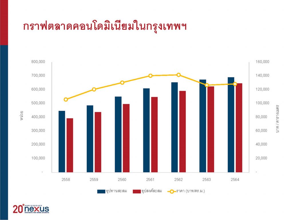 “ทั้งนี้ จากผลวิจัยข้อมูลในช่วง 20 ปีของเน็กซัสพบว่า ณ สิ้นปี พ.ศ.2564 อุปทานของคอนโดมิเนียมในตลาดกรุงเทพและปริมณฑล มีทั้งหมด 694,000 หน่วย การเติบโตของอุปทาน แบ่งออกเป็น 3 ไซเคิลหลัก โดยในช่วงแรก ปี พ.ศ. 2544 – 2552 การพัฒนาคอนโดมิเนียมส่วนใหญ่ จะกระจุกตัวอยู่ใจกลางเมืองและบริเวณรอบใจกลางเมือง จำนวนหน่วยที่พัฒนาสะสมมีอยู่ 123,000 หน่วย ตลาดเริ่มเปลี่ยนแปลงอย่างเห็นได้ชัด ในไซเคิลที่ 2 ช่วงปี พ.ศ. 2553 – 2561 การพัฒนาขยายตัวออกไปในทำเลรอบนอกมากขึ้น และมีดีเวลลอปเปอร์รายใหม่เข้ามาในตลาดมากขึ้น อุปทานเพิ่มขึ้นอย่างก้าวกระโดด โดยมีอุปทานสะสมในช่วง 8 ปีเพิ่มขึ้นถึง 482,000 หน่วย อย่างไรก็ดีในช่วงไซเคิลที่ 3 ช่วงปี พ.ศ. 2562 – 2664 ตลาดหดตัวลงอย่างมาก เนื่องจากได้รับผลกระทบจากปัจจัยทางเศรษฐกิจและเหตุการณ์ไม่คาดฝันอย่างโควิด-19 โดยในช่วง 3 ปีที่ผ่านมา มีอุปทานเพิ่มขึ้นเพียง 80,100 หน่วย ซึ่งในปี พ.ศ. 2564 มีคอนโดมิเนียมเปิดใหม่เพียง 16,800 หน่วยเท่านั้น นับว่าต่ำที่สุดในรอบ 12 ปี”