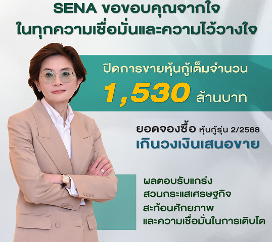 SENA ขอบคุณทุกความเชื่อมั่นปิดการขายหุ้นกู้ครบ 1,530 ล้านบาท