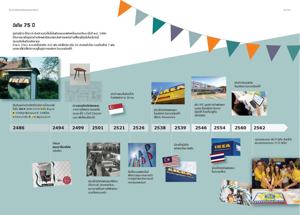 นับตั้งแต่เริ่มก่อตั้งขึ้นในประเทศสวีเดนเมื่อปี 1943 (พ.ศ. 2486) อิเกียได้มุ่งมั่นสรรสร้างชีวิตที่ดีกว่าให้แก่ผู้คนทั่วไปในทุกๆ วัน ด้วยการนำเสนอเฟอร์นิเจอร์และของแต่งบ้านที่มีรูปแบบหลากหลาย ดีไซน์สวยงาม พร้อมทั้งประโยชน์ใช้สอยคุ้มค่า ในราคาที่ผู้คนทั่วไปเป็นเจ้าของได้ ปัจจุบันอิเกียเป็นบริษัทค้าปลีกเฟอร์นิเจอร์และของแต่งบ้านที่ใหญ่ที่สุดในโลก และมีจำนวน สโตร์มากกว่า 423 แห่ง ใน 52 ประเทศทั่วโลก รวมทั้งในสิงคโปร์ มาเลเซีย และไทย ซึ่งบริหารจัดการโดยบริษัท อิคาโน่ จำกัด (Ikano Private Limited) เราผนวกแนวคิดด้านความยั่งยืนให้เป็นส่วนหนึ่งของธุรกิจ และร่วมส่งเสริมโครงการต่างๆ ที่สร้างประโยชน์ให้แก่เยาวชนและสิ่งแวดล้อม อ่านเพิ่มเติมเกี่ยวกับอิเกียได้ที่ IKEA.co.th