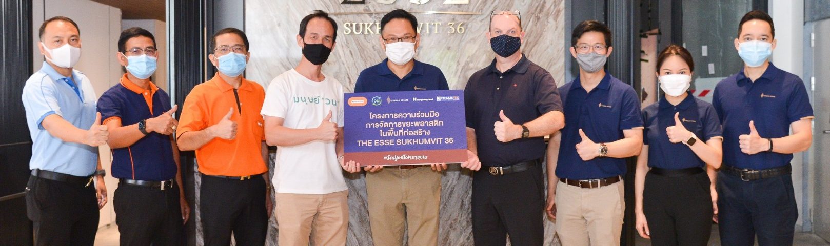 กรุงเทพฯ – สิงห์ เอสเตท นำโดย นายณัฐวุฒิ มัธยมจันทร์ (กลาง) ประธานเจ้าหน้าที่บริหารการพัฒนาธุรกิจพักอาศัย บริษัท สิงห์ เอสเตท จำกัด (มหาชน) พร้อมคณะผู้บริหาร และนายกมล บริสุทธนะกุล (ที่ 4 ซ้าย) ผู้ก่อตั้งโครงการวน และประธานเจ้าหน้าที่ฝ่ายการเงิน บริษัท ทีพีบีไอ จำกัด (มหาชน) ประกาศความร่วมมือในการจัดการขยะพลาสติกจากพื้นที่ก่อสร้างด้วยการรีไซเคิล โดยนำร่องที่โครงการดิ เอส สุขุมวิท 36 โดยมีนายวิลเลี่ยม ไบร์ท (ที่ 4 ขวา) และบริษัทพันธมิตร ร่วมเป็นเกียรติในการเปิดตัว ณ โครงการดิ เอส สุขุมวิท 36 เมื่อเร็วๆ นี้