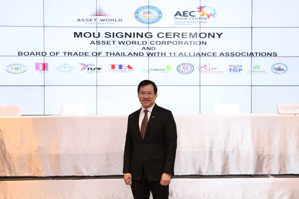 สภาหอการค้าฯ มีความยินดีที่ได้ร่วมมือกับแอสเสท เวิรด์ คอร์ปอเรชั่น หรือ AWC ในโครงการ AEC TRADE CENTER – PANTIP WHOLESALE DESTINATION ซึ่งจะเป็นกลไกสำคัญในการขับเคลื่อนกิจกรรมทางการค้าให้แก่ผู้ประกอบการไทย ซึ่งเป็นตัวสนับสนุนนโยบายของรัฐบาลเกี่ยวกับ Regional Hub ในการขยายการค้าสู่ตลาดเดิมและตลาดใหม่ ดังนั้น การเกิดขึ้นของศูนย์ค้าส่งครบวงจรอย่าง AEC TRADE CENTER – PANTIP WHOLESALE DESTINATION จะช่วยให้คู่ค้าสามารถเจรจาธุรกิจได้ตลอด 365 วัน เสริมศักยภาพให้ไทยเป็นศูนย์กลางการค้าในภูมิภาคอย่างแท้จริงและเป็นการสร้างโอกาสสำคัญให้คู่ค้าได้มาสรรหา (Sourcing) สินค้าในพื้นที่เดียวทำให้ประหยัดค่าใช้จ่ายและเวลา ซึ่งทางสภาหอการค้าแห่งประเทศไทยยังคงเดินหน้าที่จะช่วยเหลือสนับสนุน SMEs ทั้งซัพพลายเชนต่อไป โดยการแสวงหาตลาด ช่องทาง และเครื่องมือทางธุรกิจใหม่ๆ เพื่อเชื่อมโยง ผู้ผลิต ผู้ค้าปลีก ผู้ค้าส่ง ผู้นำเข้า ผู้ส่งออก รวมถึงผู้ให้บริการด้าน โลจิสติกส์ เพื่อส่งเสริมการค้าทั้งในประเทศและต่างประเทศอย่างครบวงจร ดังนั้น การพัฒนาโครงการ AEC TRADE CENTER – PANTIP WHOLESALE DESTINATION ให้เกิดขึ้นจึงเป็นประโยชน์อย่างยิ่งต่อการดำเนินธุรกิจของ SMEs”