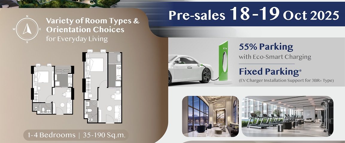 การออกแบบอาคารเน้นความยอดนิยม ดูดี มีรายละเอียดแบบ Modern Classic ผสมผสานเส้นสายที่สมดุลเข้ากับองค์ประกอบสไตล์หรูหรา อาทิ ซุ้มโค้ง ช่องแสงขนาดใหญ่ และรายละเอียดตกแต่งอย่างบัวผนัง และพื้นผิววัสดุในโทนสีสุภาพเรียบหรู เพื่อให้สอดคล้องกับแบรนด์และภาพลักษณ์ของผู้อยู่อาศัย โครงการประกอบด้วยห้องชุดเพื่อการพาณิชย์ 2 ยูนิต และห้องชุดเพื่อพักอาศัย 828 ยูนิต รูปแบบ 1 ถึง 4 ห้องนอน พื้นที่ใช้สอยตั้งแต่ 35–190 ตารางเมตร ในราคาเริ่มต้น 2.19-18 ล้านบาท โดดเด่นด้วยแปลนและฟังก์ชันของห้องพักถูกออกแบบตามทิศทางแสงและลม เพื่อให้แต่ละยูนิตสอดคล้องกับการใช้ชีวิตจริง อาทิ ยูนิตทิศเหนือ–ตะวันออก รับแสงอ่อน ไม่ร้อน เหมาะกับ ผู้ที่ใช้ชีวิตในห้องเป็นหลัก เน้นฟังก์ชันยืดหยุ่น แบ่งสัดส่วนใช้งานได้หลากหลายโดยไม่เน้นครัวหนัก ส่วนยูนิตทิศตะวันตกวางครัวติดผนังนอก ระบายอากาศดี พร้อมห้องนอนขนาดใหญ่ที่มีพื้นที่แต่งตัวชัดเจน และห้องนั่งเล่นรับแสงเต็มวัน