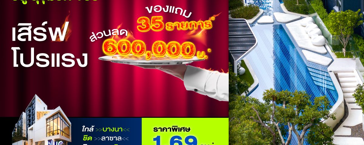 พบกับแคมเปญสุดพิเศษ “เสิร์ฟโปรแรง” พร้อมรับข้อเสนอสุดคุ้มมากมาย ตั้งแต่วันนี้ถึง 31 มีนาคมนี้ เท่านั้น ณ โครงการ บลู สุขุมวิท 105 ผู้สนใจสามารถลงทะเบียนรับสิทธิพิเศษได้ที่ https://grandunity.co.th/th/blue-sukhumvit-105 หรือสอบถามรายละเอียดข้อมูลเพิ่มเติมได้ที่ LINE @GrandUnity หรือ โทร. 0 2652 4000