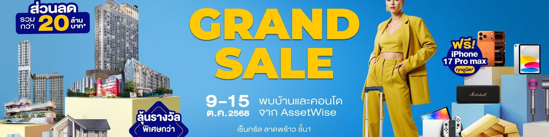 แอสเซทไวส์ ยกทัพบ้าน-คอนโด แจกหนักจัดเต็มกับงาน “AssetWise Grand Sale 2025” ฟรี iPhone 17 Pro Max ทุกยูนิต* ลดรวม 20 ล้าน* วันที่ 9-15 ต.ค. นี้ ณ เซ็นทรัล ลาดพร้าว