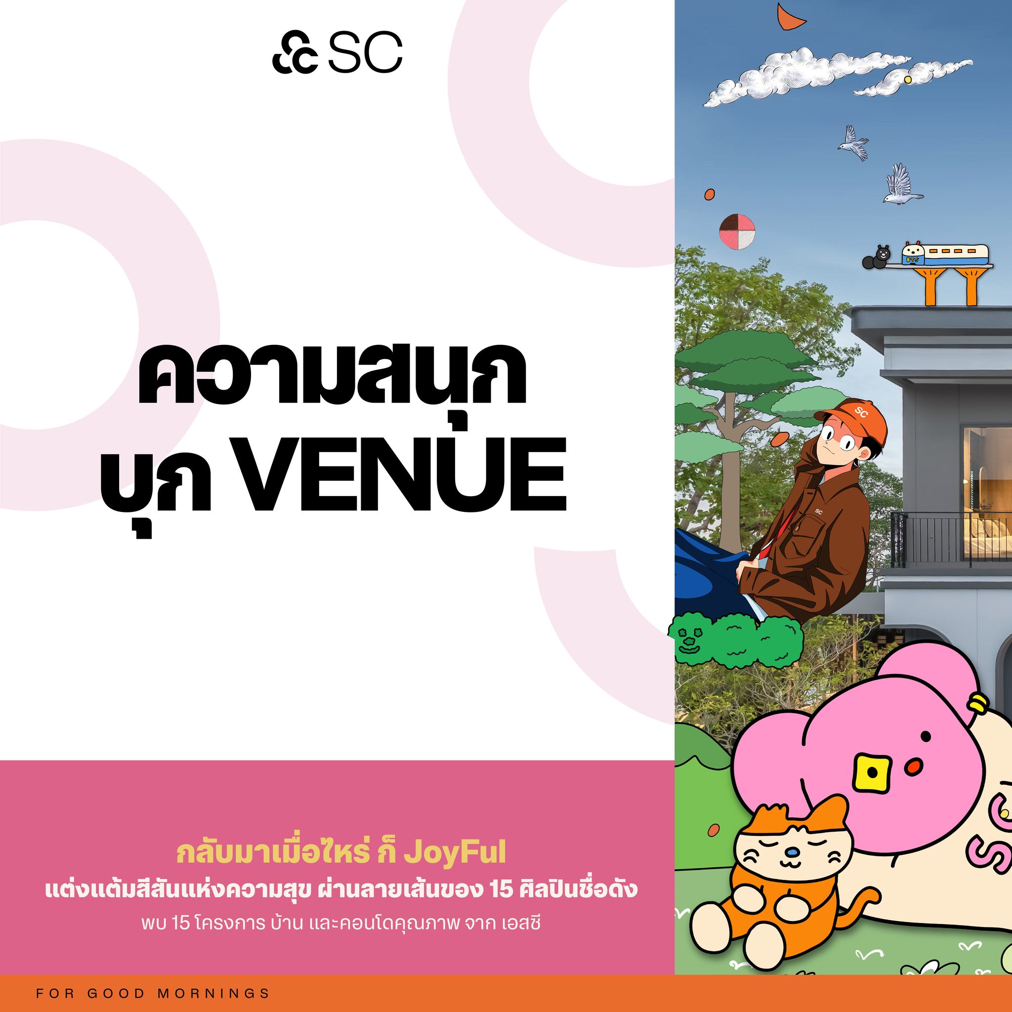 SC เติมสีสันแห่งการอยู่อาศัย คิกออฟแคมเปญ “Whenever You Feel” ด้วยการ Art Collaboration กับ 15 ศิลปิน illustrators ของไทย ถ่ายทอดความหมายของคำว่า “บ้าน” ผ่านลายเส้นที่สะท้อนโมเมนต์ความสุขของการใช้ชีวิต ภายใต้แนวคิด “กลับบ้านเมื่อไร ก็ Joyful” เพื่อสร้างการรับรู้แบรนด์บ้านเดี่ยวระดับพรีเมียม VENUE ทั้ง 14 โครงการ และ 1 โครงการคอนโดมิเนียม เรฟเฟอเรนซ์ เกษตร ดิสทริค (Reference Kaset District) ราคาเริ่มต้น 4.69 – 20 ล้านบาท พร้อมมอบสิทธิพิเศษสำหรับ ผู้ซื้อ 20 หลังแรก รับของขวัญ Limited Edition จากผลงานศิลปิน ตั้งแต่วันนี้ – 30 มิ.ย.นี้