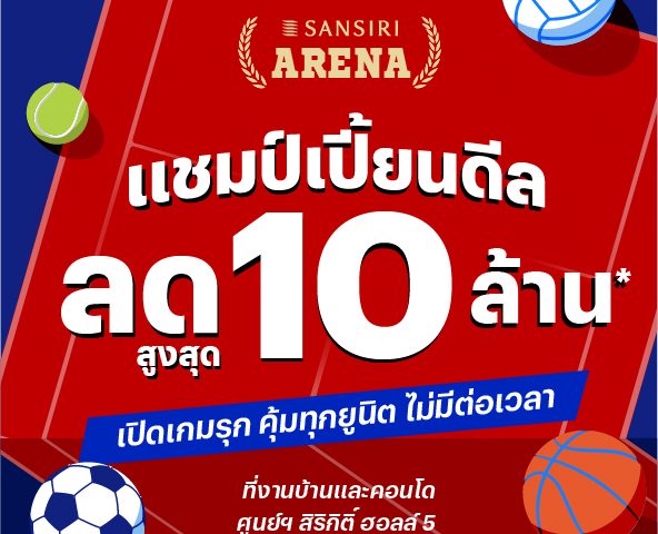 ศึกใหญ่เปิดสนาม! SANSIRI ARENA: แชมป์เปี้ยนดีล ลดสูงสุด 10 ล้าน* แสนสิริลุยเต็มสูบ ยกสนามกีฬามาไว้ใจกลางมหกรรมบ้านและคอนโด