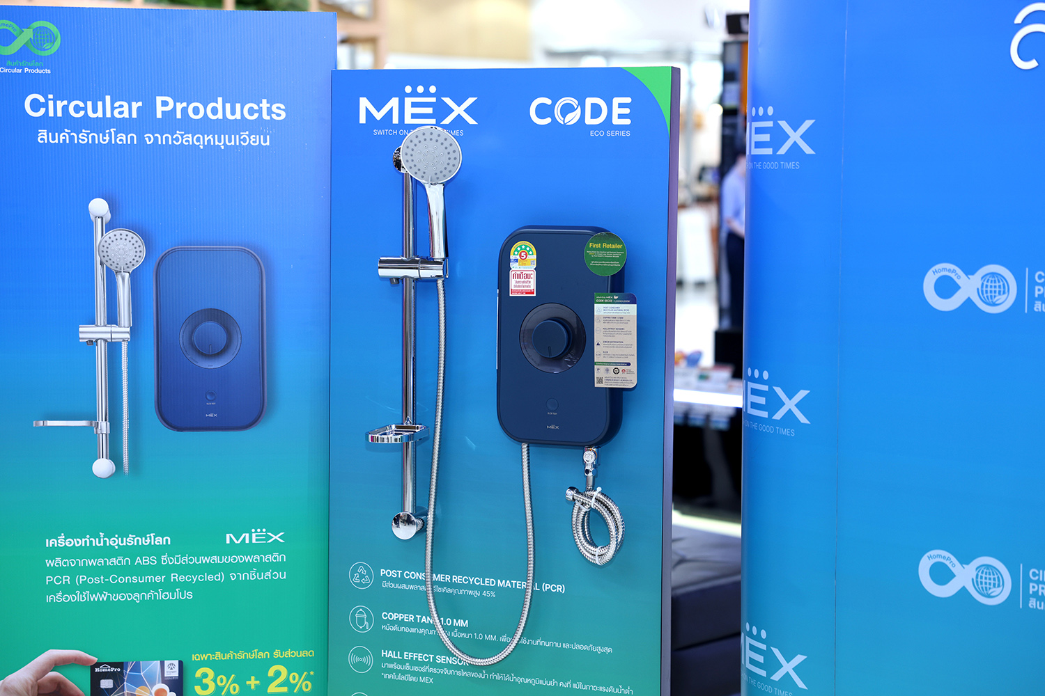โฮมโปร x MEX ยกระดับ “สินค้ารักษ์โลก จากวัสดุหมุนเวียน” เปิดตัวเครื่องทำน้ำอุ่นรักษ์โลก “MEX CODE ECO Series” ใช้พลาสติกหมุนเวียน 45% จากโครงการ “แลกเก่าเพื่อโลกใหม่” ขับเคลื่อนเศรษฐกิจหมุนเวียนอย่างยั่งยืน